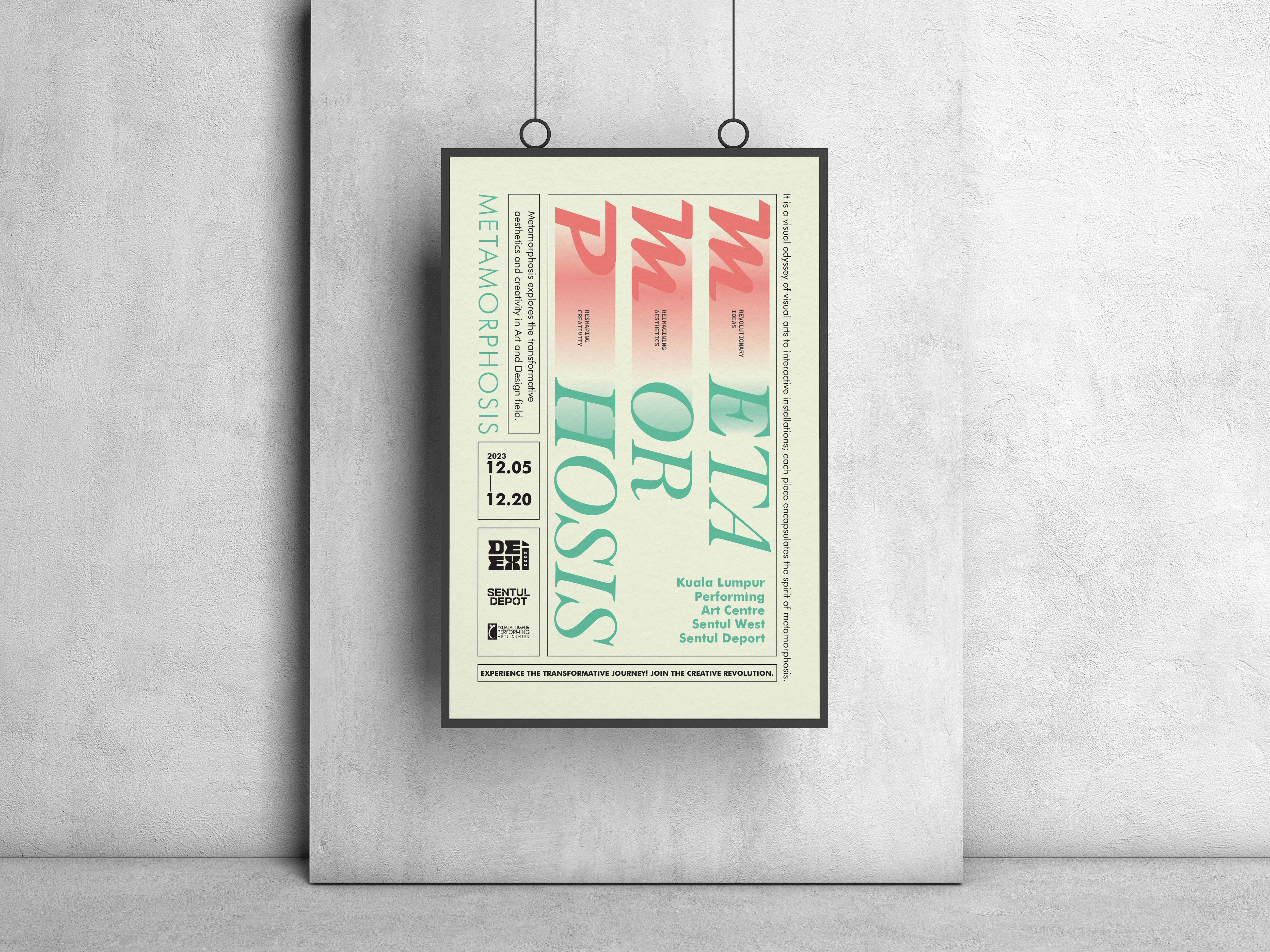 Metamorphosis represents the transformation of one subject into another. The design will embrace a minimalist style, emphasizing the changing process through the use of blur effects, such as gradient or Gaussian blur, to visually illustrate the shift. Different fonts will be incorporated to highlight the evolution of the subject, creating a sense of change and movement. A paper texture will be added to enhance the tactile feel, giving the design depth and a unique, layered look. This approach will convey the fluidity of transformation while maintaining a clean and refined aesthetic.